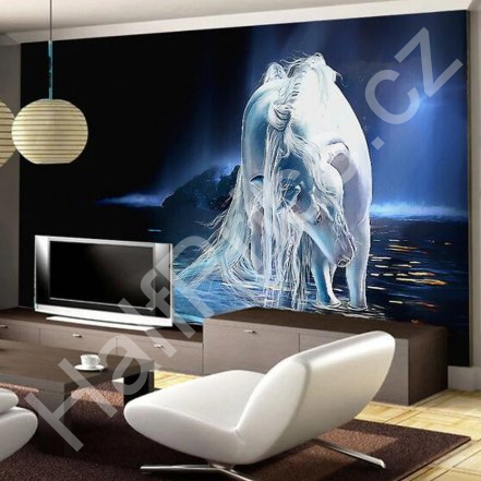 Solution Media 3D tapeta - Bílý kůň MU736 2 - Voděodolná hedvábná tkanina - Textilní tapeta lesklá - 200g/m2