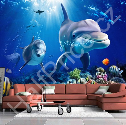 Solution Media 3D tapeta - Delfín II. MU1458 2 - Voděodolná hedvábná tkanina - Textilní tapeta lesklá - 200g/m2