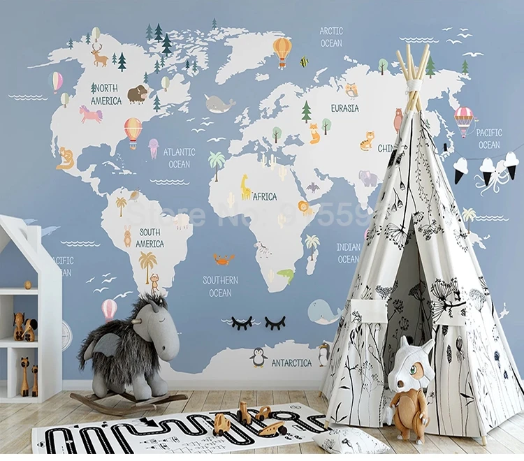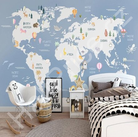 Solution Media 3D tapeta - Kreslená mapa MU2939C 2 - Voděodolná hedvábná tkanina - Textilní tapeta lesklá - 200g/m2