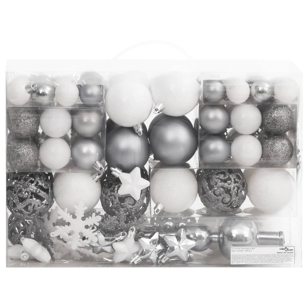 • OMAXI 111dílná sada vánočních ozdob bílá a šedá polystyren 408152