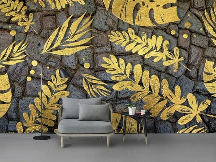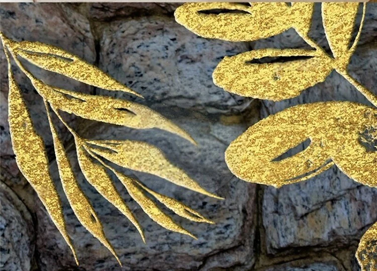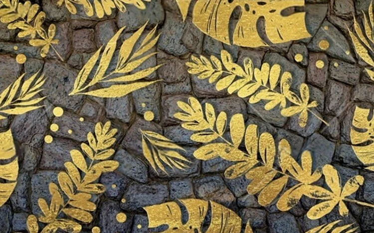 Solution Media 3D tapeta - Zlaté listy s kamenným vzorem MU9105 3 - 3D Relief - Vliesová tapeta - 320g/m2