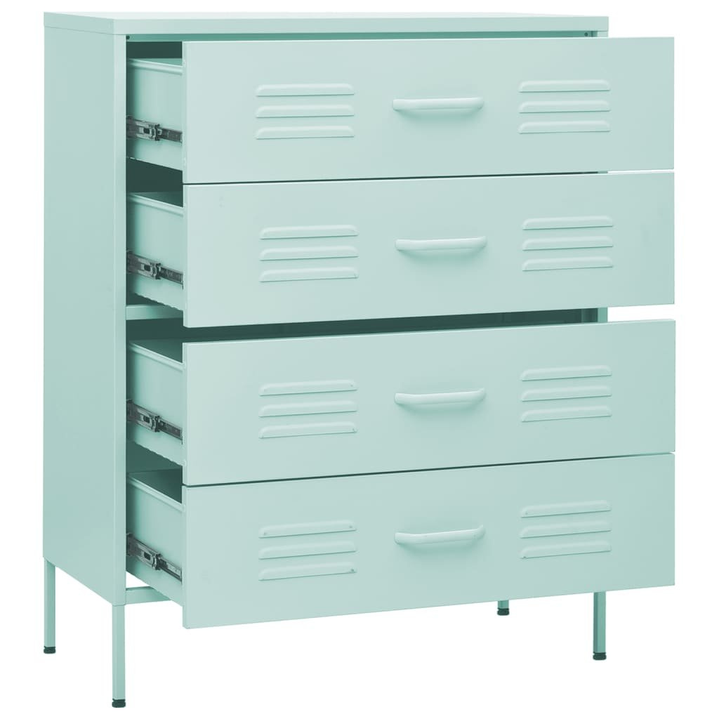 Odkládací skříňka má ocelovou konstrukci, takže toho hodně vydrží a má dlouhou životnost. Nivelační nohy ve spodní části umožňují nastavit výšku podle vašich potřeb. Zásuvky lze zcela vytáhnout, skvěle se proto hodí k přehlednému ukládání nejrůznějších maličkostí, které chcete mít vždy po ruce. Pojezdy zásuvek s kuličkovými ložisky zajišťují hladké otevírání a zavírání, a to i při těžším obsahu.