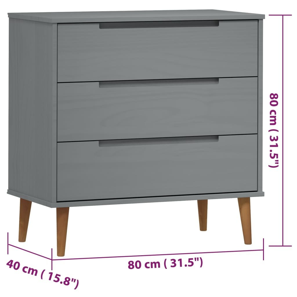User review OMAXI Zásuvková komoda MOLDE šedá 80x40x80 cm masivní borové dřevo 541934